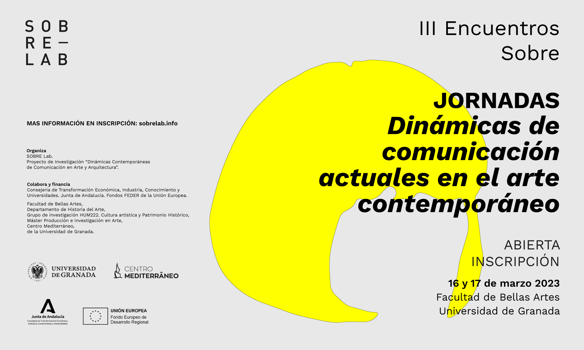La plataforma SOBRE Lab organiza, en el marco del proyecto de investigación “Dinámicas Contemporáneas de Comunicación en Arte y Arquitectura”, los III Encuentros SOBRE con el título “Dinámicas de comunicación actuales en arte contemporáneo”. Durante los días 16 y 17 de marzo de 2023 se celebrarán en la Facultad de Bellas Artes de la Universidad …