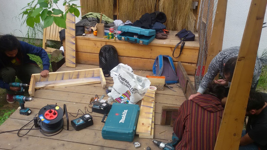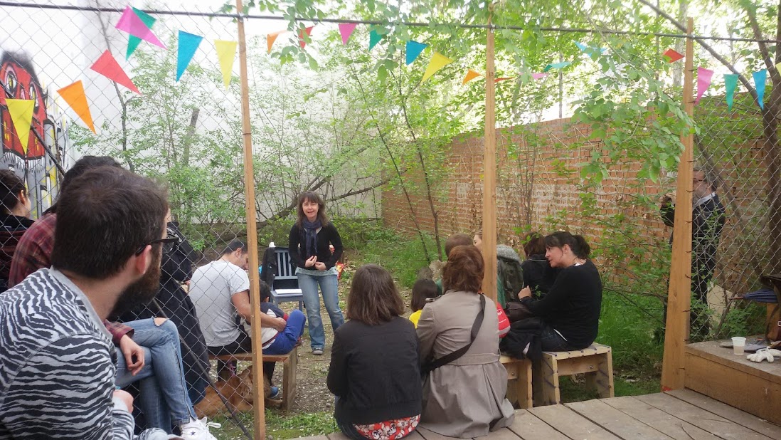 El sábado 18 de abril estuvimos de celebración en Ganando Metros. Pasamos una mañana estupenda en la que se derribó la valla interior del solar para poder utilizar la parte final del mismo. Basurama y Zuloark dieron un taller de construcción de mobiliario para equipar al nuevo espacio con banquitos, el Club Majalasna coordinó una actividad de juegos de mesa y Martuca Chiara entretuvo a grandes y pequeños con sus cuentos. Al final del encuentro compartimos todos juntos un aperitivo. Participamos además en esta jornada festiva Moenia, Sodeste, La asociación de Vecinos de Cuatro Caminos y un montón de vecinos que vinieron a disfrutar del nuevo espacio.