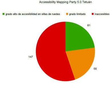 Se resumen en el siguiente diagrama en el que vemos en rojo los locales inaccesible, en naranja los de grado limitado y en verde los de grado alto de accesibilidad.