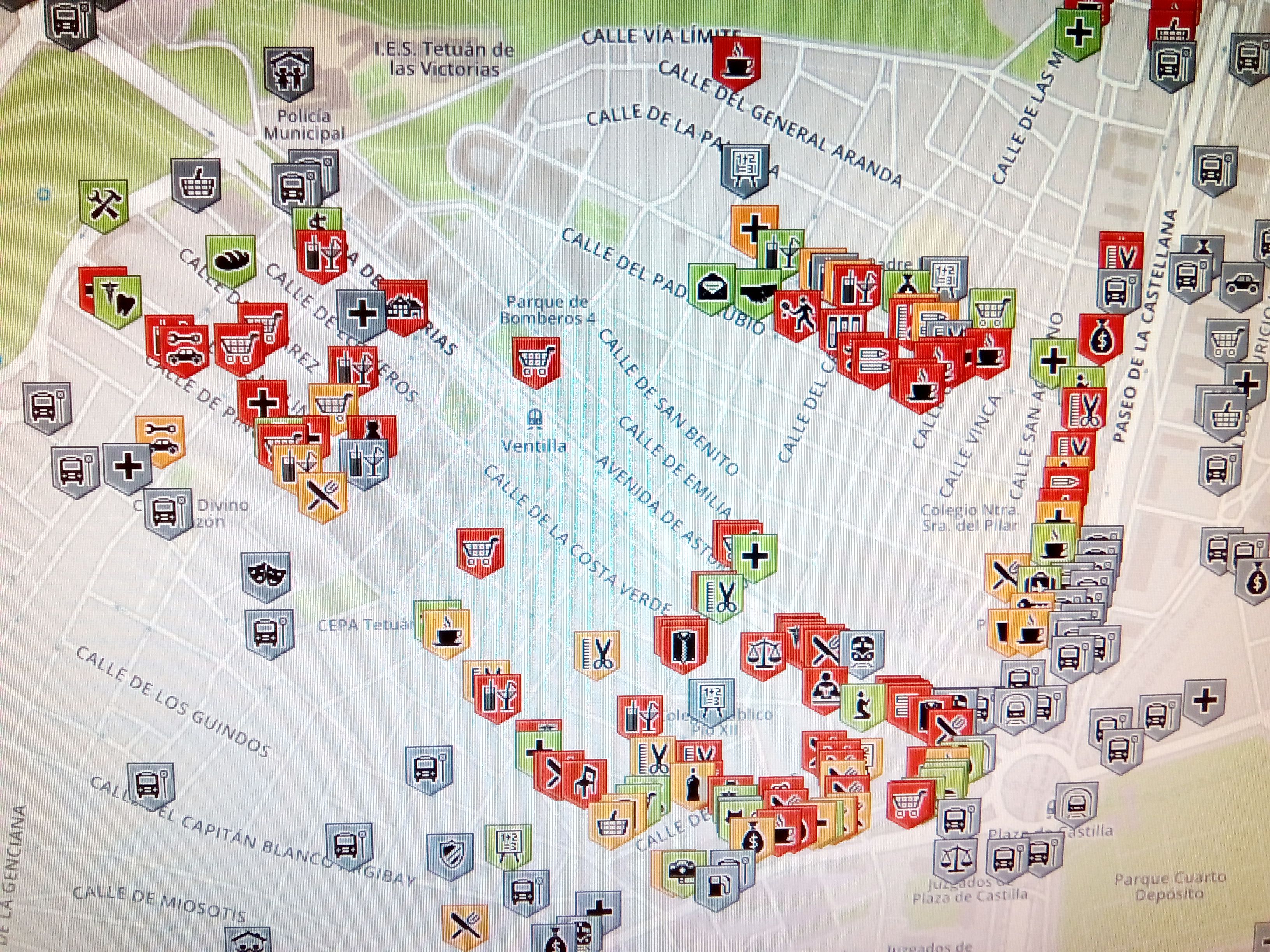 Si bien nos propusimos centrarnos en locales a pie de calle: colegios, bares, farmacias, centros públicos, talleres, restaurantes, etc; pretendíamos también valorar los espacios abiertos y las condiciones de accesibilidad de las vías públicas. Planteamos también la propuesta de, en ocasiones, entrar en los establecimientos para evaluar la accesibilidad en el interior y la posibilidad de acceso a los baños en aquellos locales obligados a disponer de los mismos (bares, centros públicos…). Para ello, pediremos permiso y explicaremos a quienes trabajan allí que estamos realizando un estudio sobre el barrio, entregándoles un folleto explicativo.
