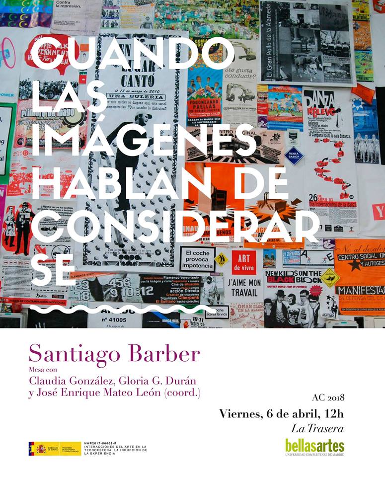Este viernes 6 de abril organizamos una sesión en La Trasera de la Facultad de Bellas artes para poner la atención en la relación entre las llamadas prácticas colaborativas o comunitarias y el arte y más concretamente en su capacidad de relato, registro y propagación. Para ello contaremos con la presencia de Santiago Barber como ponente principal y luego tendremos la oportunidad de charlar y debatir con los asistentes en una pequeña mesa redonda.