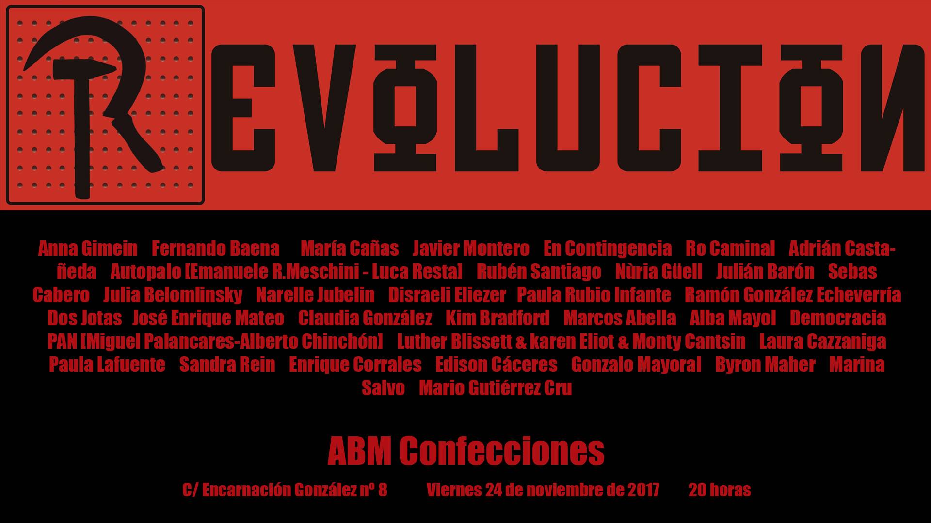 Con motivo del centenario de la Revolución de Octubre ABM Confecciones propone una exposición en la que varias artistas son invitados a abordar la cuestión los diversos modos en los que la práctica artística se ha relacionado con lo social y lo político en el contexto del impulso revolucionario. La intención es la de abrir un …